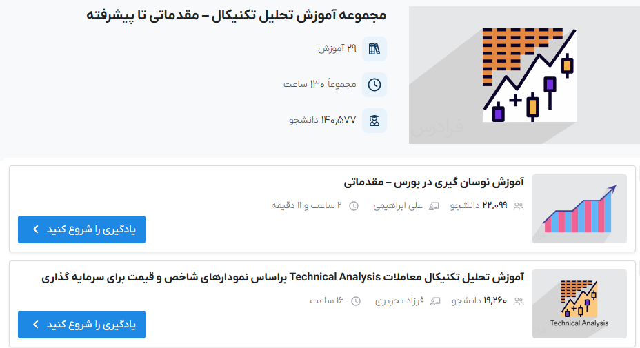 نواحی حمایتی و مقاومتی تاثیر قابلتوجهی در نوسانات قیمتی در نمودار دارند و رفتار قیمت در الگوهای موجود در تحلیل تکنیکال را شکل میدهند. برای یادگیری تحلیل تکنیکال فیلمهای آموزشی متنوعی در فرادرس تهیه شده است که در ادامه برخی از آنها را معرفی میکنیم.