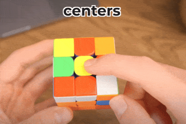«قطعات مرکزی» (Centers)، همان مربع وسط هر وجه از مکعب روبیک است. در روبیک ۳×۳، این قطعات ثابت هستند و حرکت نمیکنند. یعنی همیشه در همان موقعیت باقی میمانند. به همین دلیل، رنگ مرکز هر وجه تعیین میکند که آن وجه باید چه رنگی داشته باشد. مثلاً اگر مرکز یک وجه آبی است، تمام قطعات آن وجه در حالت حل شده باید آبی باشند.