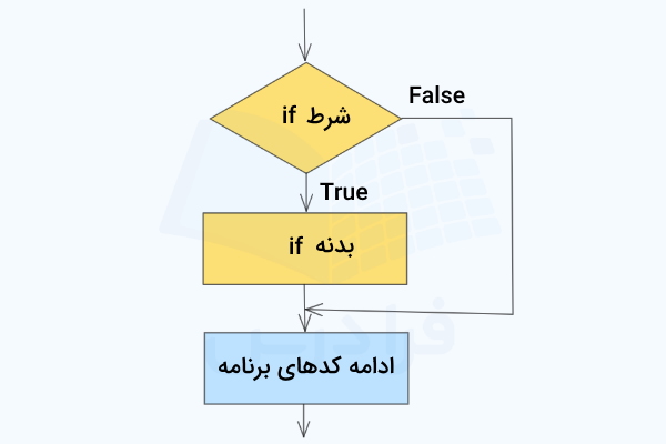 در فلوچارت پایین روش اجرای دستور if ساده را نشان دادهایم.