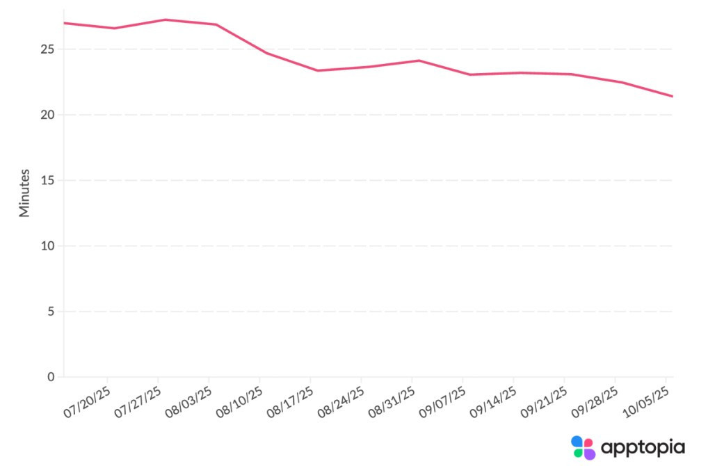 - میانگین زمان صرف شده توسط هر کاربر فعال روزانه در برنامه تلفن همراه ChatGPT در ایالات متحده (نمودار: Apptopia)