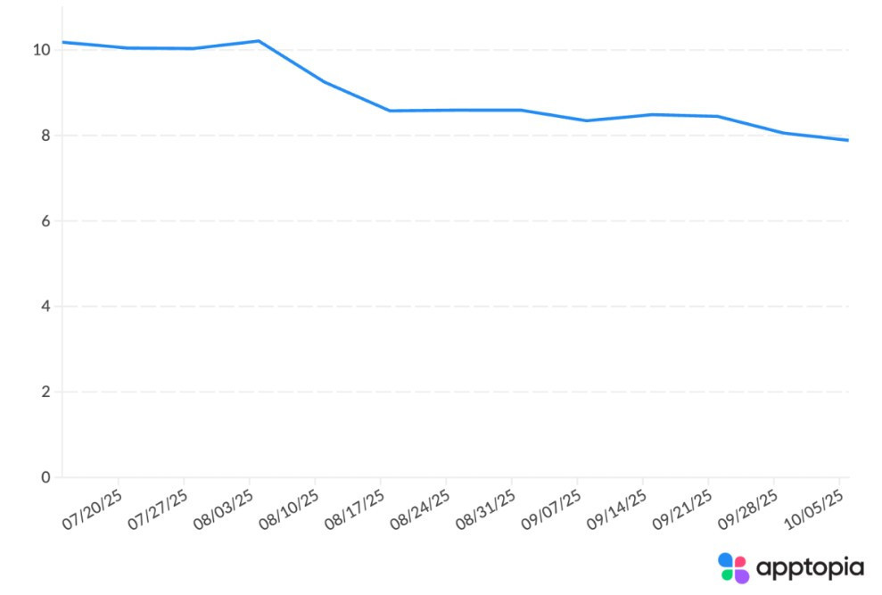 طبق آخرین تحلیل شرکت Apptopia که روند دانلود و کاربران فعال روزانه را بررسی میکند، رشد اپلیکیشن موبایل ChatGPT در ماههای اخیر کاهش یافته است. این کاهش، نتیجهی مستقیم رقابت فشرده در دنیای هوش مصنوعی و تغییرات رفتاری کاربران محسوب میشود.