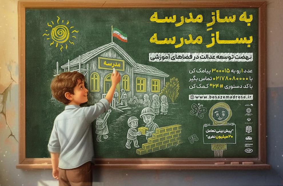 گفتنی است پویش «بساز مدرسه» به همت جامعه خیرین مدرسه‌ساز کشور و سازمان نوسازی مدارس شکل گرفته و بستری است برای آنکه هر ایرانی، از طریق مشارکت نقدی، غیرنقدی، یا حتی سفیر شدن در پروژه‌ها، گامی در ساخت آینده‌ای روشن برای کودکان این سرزمین بردارد.