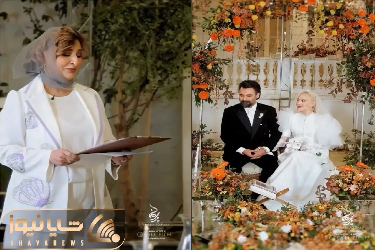 ویدیویی جنجالی از مرجانه گلچین منتشر شد که مراسم عقد آرام جعفری و بابک انصاری را اجرا میکند