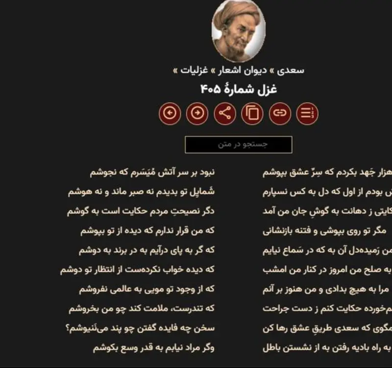 کمتر کسی است که تا به امروز نامی از سعدی به گوشش نخورده باشد. شاعری که غزلهای عاشقانهاش، نه تنها در دل ایرانیان بلکه در قلب مردم سراسر دنیا جای گرفته است. شعرهای او با زبانی ساده و روان، حسهای پیچیده انسانی را به زیباترین شکل به تصویر کشیدهاند. از این رو آثار این استاد سخنوری، همواره مقصدی بیانتها برای شیفتگان شعر و ادب بوده است.
