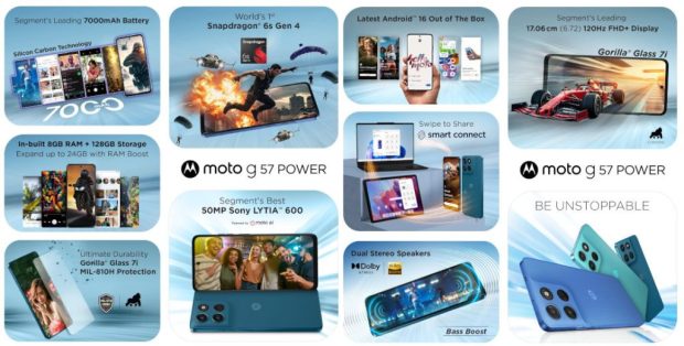 موتورولا از گوشی اقتصادی موتو G57 پاور در هند رونمایی کرد. این گوشی میان رده با باتری غولآسا، نمایشگر ۱۲۰ هرتزی و تراشه اسنپدراگون جدید به بازار عرضه میشود.