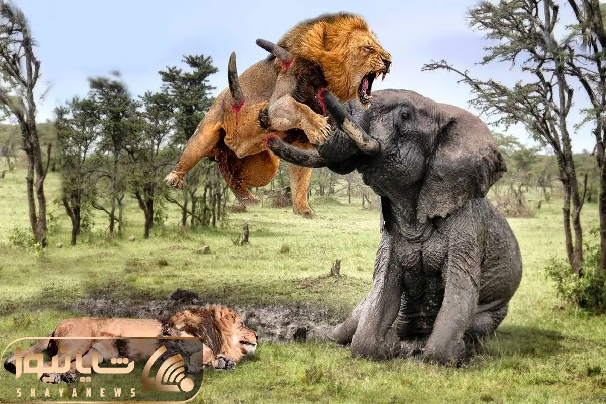 شیر با تبختر و غرور به سمت فیل یورش می بره اما فیل عین توپ پرتش می کنه به آسمان