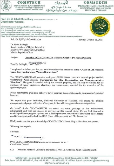 به گزارش ایسنا، برنامه گرنت پژوهشی COMSTECH ۲۰۲۵ از سوی کمیته دائمی همکاریهای علمی و فناوری کشورهای اسلامی (COMSTECH) اجرا میشود و تمرکز آن بر شناسایی و پشتیبانی از ظرفیتهای علمی نوظهور در میان پژوهشگران زن جوان کشورهای اسلامی است.
